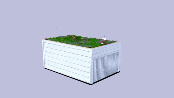 Blomsterkasse robotplæneklipper garagen er utrolig smart, da den giver dig mulighed for at plante blomster eller grøntsager på taget, ligesom du ville gøre i et almindeligt blomsterbed.